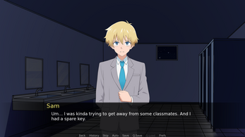 The only thing I'd say is that, like most visual novels, the sprites look really stiff, it's hard to get immersed when they're always making the same pose for every interaction/not blinking, idle animation would do wonders here, but not a lot VNs have them, so nothing against you. :D